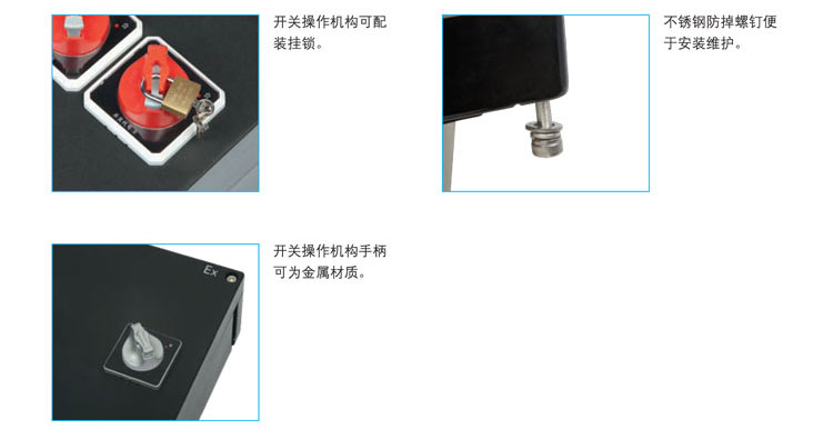 2.机盖上有特别的操作部门,可以实现全封闭的操作。可以根据需安装挂锁,以免时有发生误操作。产品还可以在恶劣的环境下正常工作,从而保证用户的人身安全。