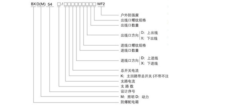 BXK55-T系列照明(电源)防腐防爆配电箱型号及意义: